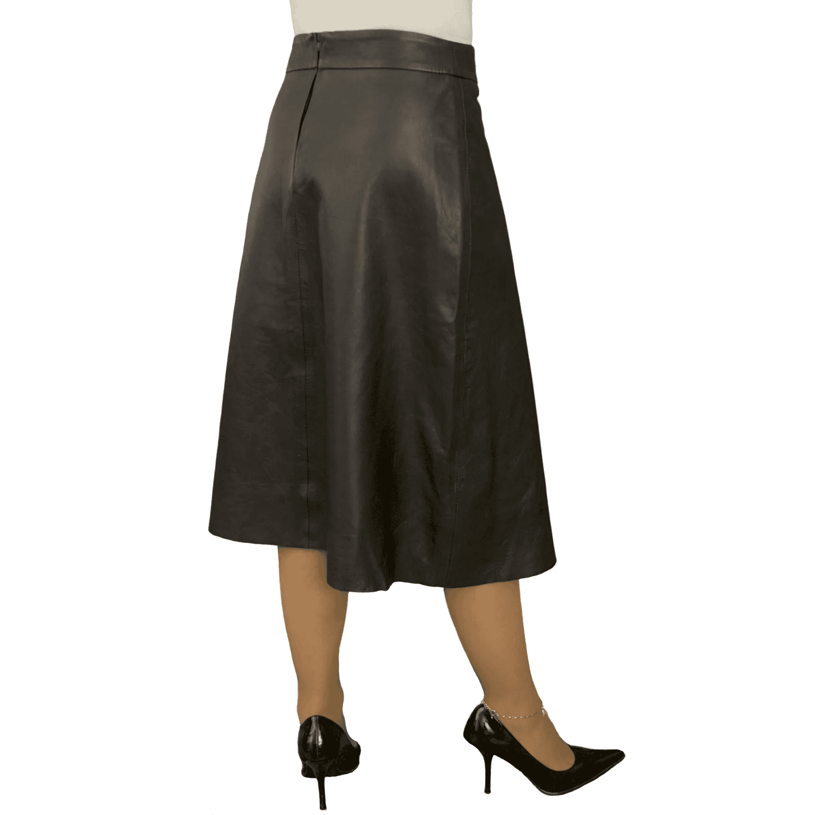 Flared Lambskin Midi Skirt with Red Satin Lining